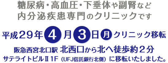 - 阪急「西宮北口」駅前に糖尿病・内分泌疾患専門クリニック「玉田クリニック」を開設いたしました。どうぞよろしくお願い申し上げます。